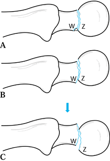 the femoral head at its junction with the neck. As seen in Figure 19.1,