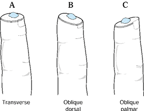 describe the angulation of injury—dorsal oblique, transverse, and volar