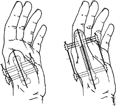 metacarpal ligaments from the adjacent sides of the resected metacarpal. -