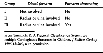 Forearm Deformity in Hereditary Multiple Exostoses. J Pediatr Orthop 1993;13:587.
