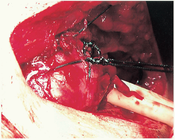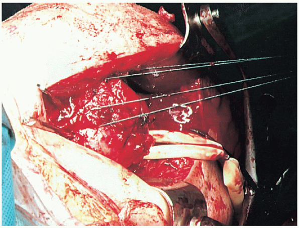FIGURE 5-12. Passage of heavy suture through the drill holes.