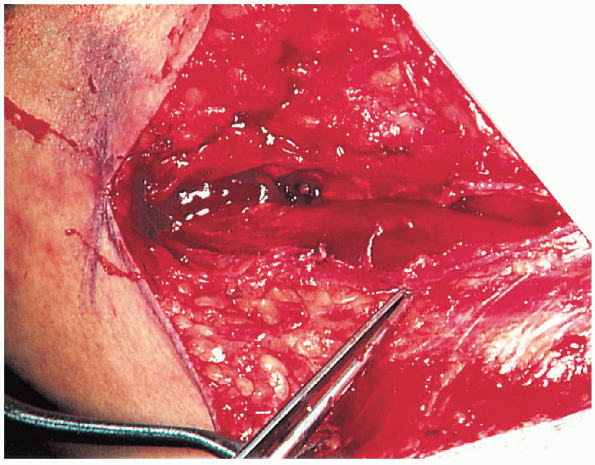 FIGURE 5-9. Use of a self-retainer to retract the conjoined tendon and the pectoralis major medially and the deltoid laterally.