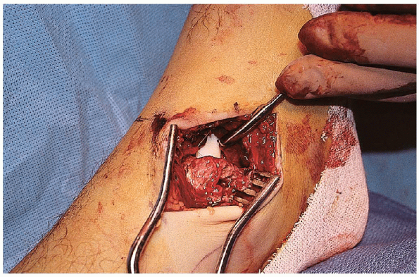 and the flexor hallucis longus muscle to expose the distal aspect of