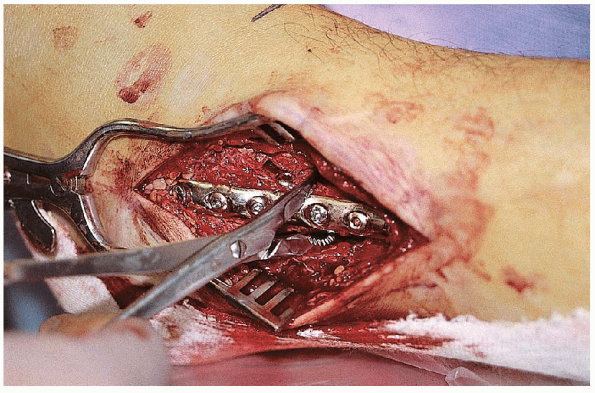 screws directed from a posterior to an anterior direction (Fig. 33-26).