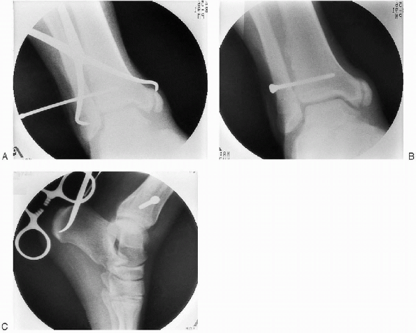 (Fig. 33-23). After provisional fixation, radiographic confirmation of mortise alignment is obtained.