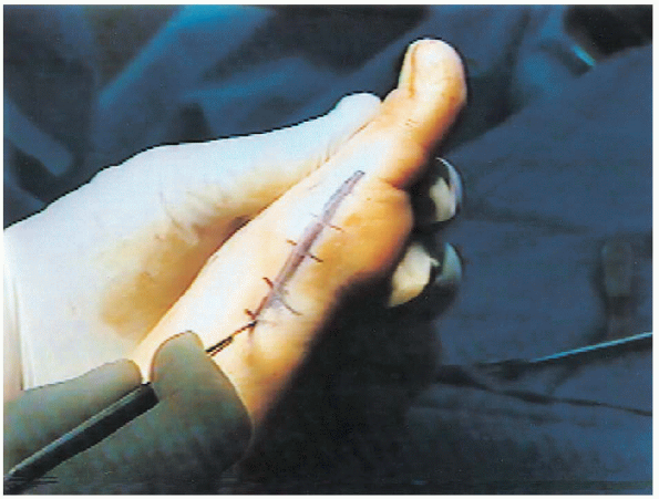 FIGURE 34-29. During capsular closure, be aware of the digital nerve.