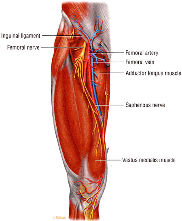 FIGURE 6.19 ● The saphenous nerve as it descends down the thigh to enter the adductor canal.