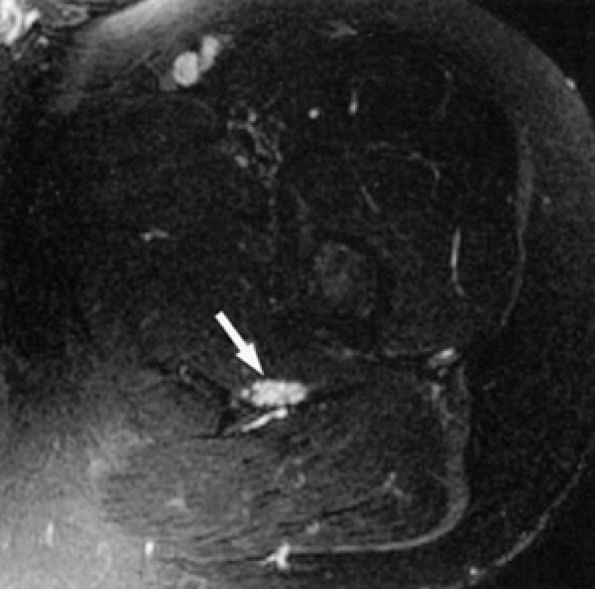 The usefulness of STIR and contrast-enhanced fat-saturated T1-weighted images is controversial due to variable signal intensity of the neuroma on these sequences.193