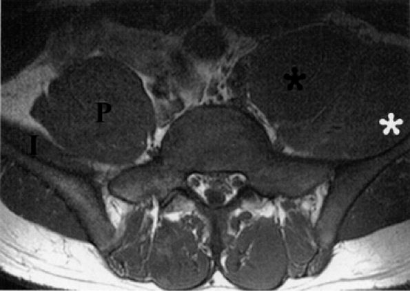 Significant asymmetry in the piriformis muscles is noted between the symptomatic and asymptomatic sides (Figs. 6.16 and 6.17). Mild asymmetry of the muscles, however, is often present in asymptomatic individuals.