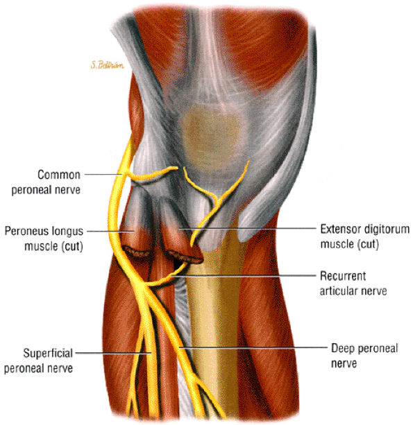 Selective muscle involvement is a common occurrence that manifests clinically, electrodiagnostically, and on MR examination as selective damage of only a few muscles along a specific nerve distribution. Sciatic nerve injury, for example, typically affects the peroneal division and spares the tibial division, partly because the former is more superficial, has larger fascicles and less connective tissue, and is fixed at two places. Similarly, entrapment of the common peroneal nerve usually affects the deep peroneal nerve more than the superficial peroneal nerve because the former is in closer proximity to the fibular head. This selective fascicular involvement can also occur within a single nerve branch,