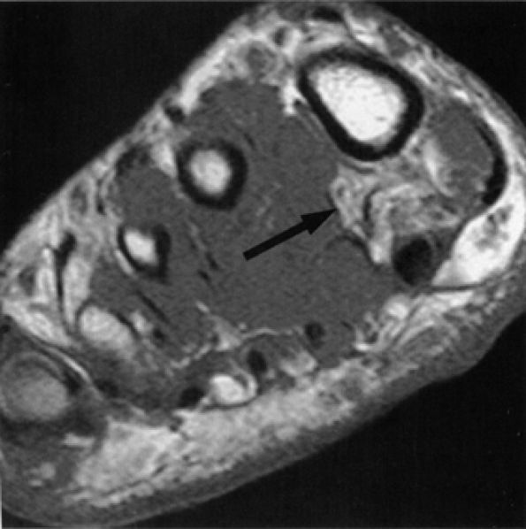FIGURE 6.58 ● A third interdigital Morton's neuroma at the confluence of the terminal branches of the medial and lateral plantar nerves.