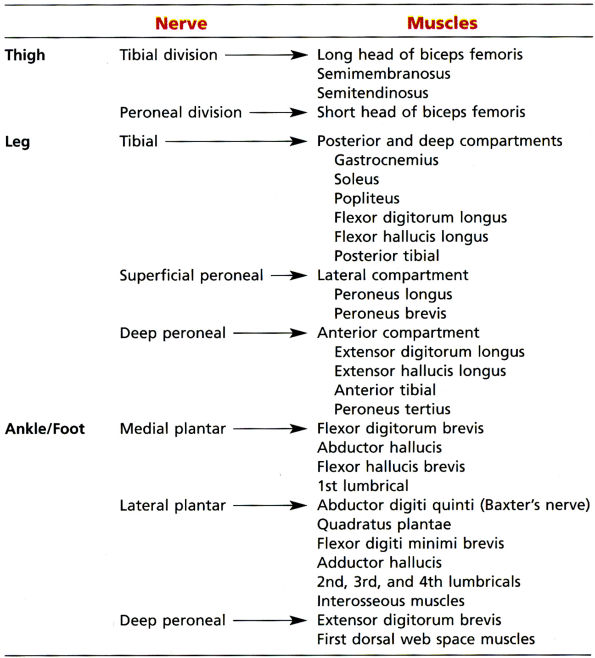 TABLE 6.2 ● Motor Distribution of the Sciatic Nerve