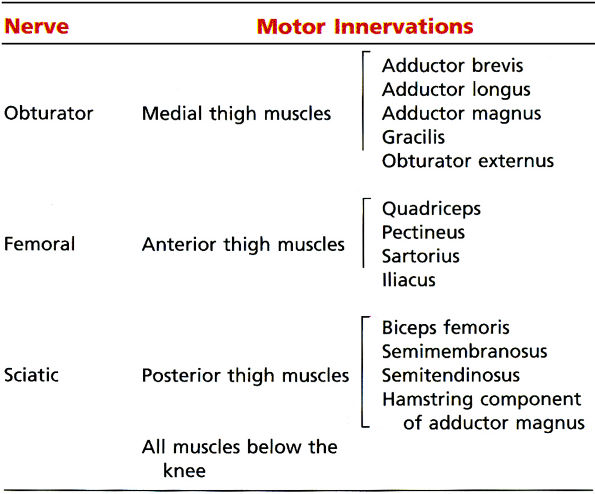TABLE 6.1 ● Major Motor Innervations of the Lower Extremity