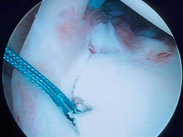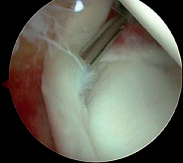 A full-radius blade motorized shaver is used to gently débride loose and frayed tissue to prevent snagging of tissue with joint motion or potential loose bodies.