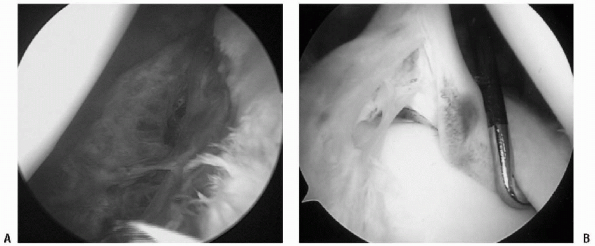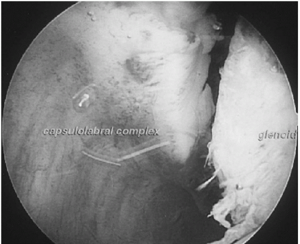 Figure 17-2 Arthroscopic view of a Bankart lesion, left shoulder, sitting position viewed from posteriorly.