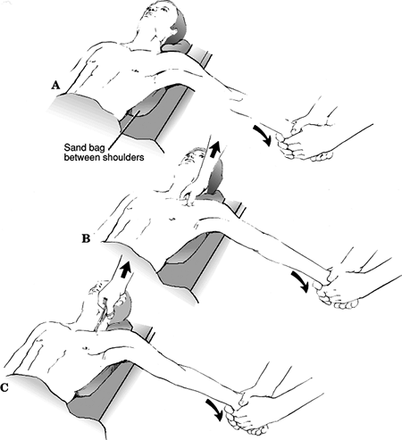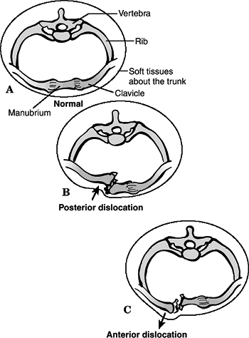 12.8. Technique for closed reduction of the sternoclavicular joint. (A)