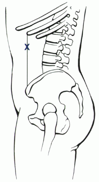medial off the dorsal rib cage or the quadratus lumborum in the lumbar