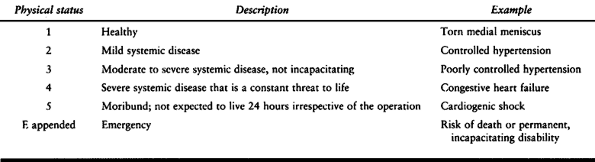 used to grade the preoperative physical condition of surgical patients (38). The current, revised classification appears in Table 7.6 (34).
