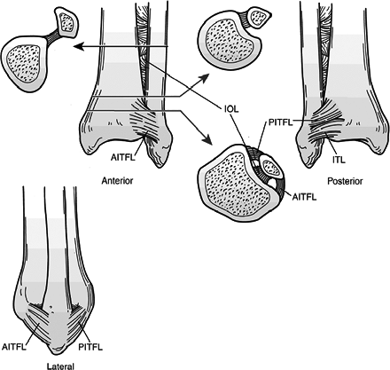 38.2. Three views of the tibiofibular syndesmotic ligaments.