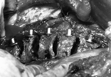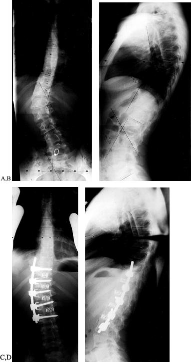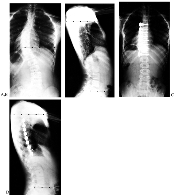 ligaments (5), increases fusion rates, prevents crankshafting in immature spines (8,20,21), decompresses the spinal cord, and provides exposure for internal thoracoplasty (40). This is followed by posterior instrumentation and fusion. Powell et al. (36)
