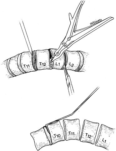fusion for tuberculosis of the spine in 1956 (13,14). Dwyer expanded the technique developed by Hodgson to approach the convex side of a scoliosis curve (9,10). During the past 30 years, spinal surgeons have become facile with the anterior or combined anterior and posterior approaches.