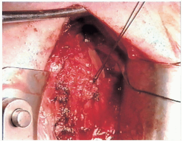 lateral capsule with no. 2 Mersilene in simple interrupted sutures.