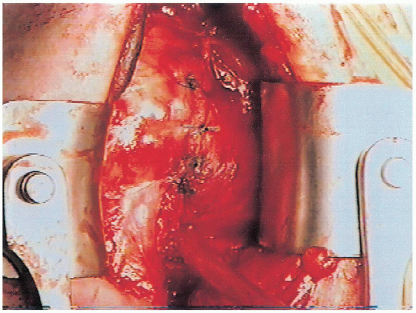 Mersilene using simple interrupted sutures. The area of overlap of the
