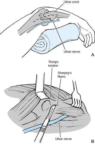Use a triceps-sparing posterior approach. Transfer of the ulnar nerve is usually required