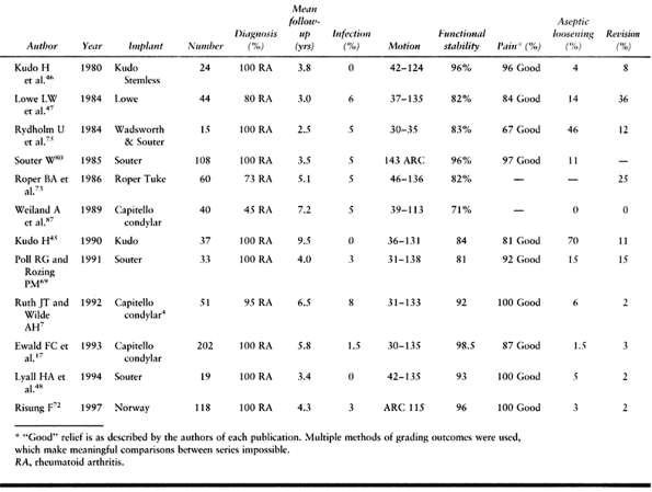E, Vella M, Ewald FC. Radial Head Replacement in Capitellocondylar