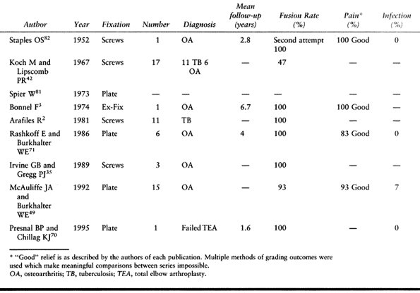 elbow arthrodesis due to the current infrequency of this procedure. In