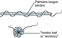 sewing the suture onto itself, a tendon ball or “anchovy” can be