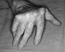 Ulnar deviation and an inability to extend the digits completely are fairly uniform in patients with longstanding rheumatoid arthritis. |