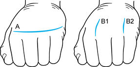 Figure 71.4. The two types of incisions that can be utilized for metacarpophalangeal joint arthroplasty. See text for details.