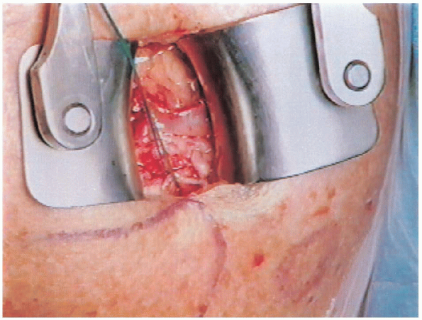 The tendon is then repaired to bone using no. 2 nonabsorbable sutures
