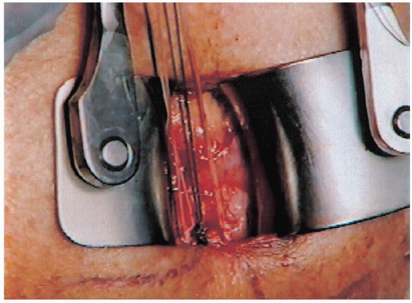 either through transosseous tunnels or with suture anchors (Fig. 2-23).