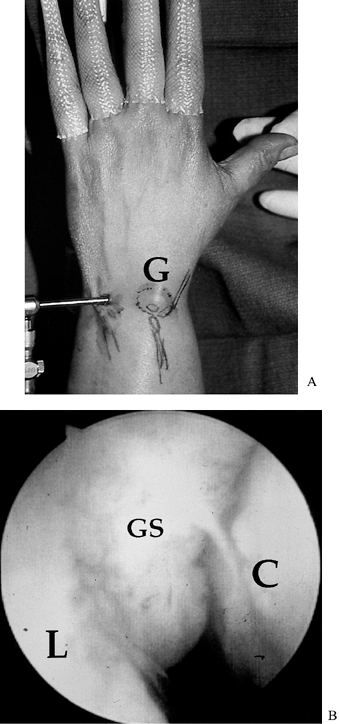 the proximal capitate and the lunate fossa of the radius. Arthroscopy