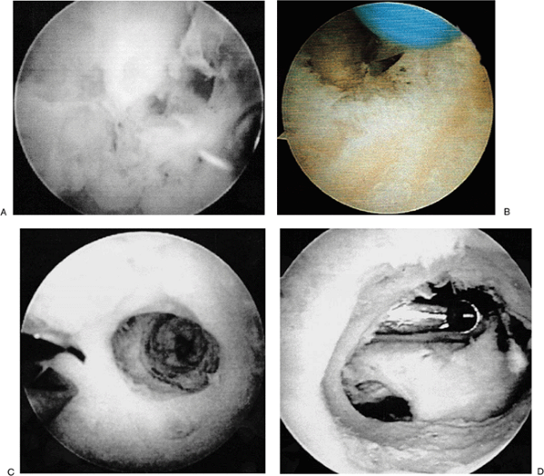 Figure 2-21. A–D: Pre- and postoperative motion after arthroscopic debridement.