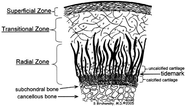FIGURE 7.2 ● Schematic diagram of cartilage zonal histology.