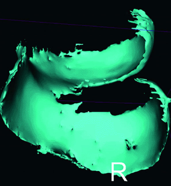 FIGURE 7.4 ● Three-dimensional cartilage model built from a semi-automated segmentation algorithm, with the cartilage subtracted from the subchondral bone. MR data were obtained from a 3D fat-suppressed, T1-weighted gradient-echo acquisition. These models may eventually prove helpful in surface replacement techniques.