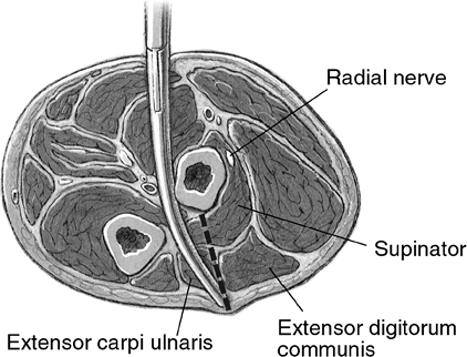 the forearm fully pronated to protect the posterior interosseous nerve,
