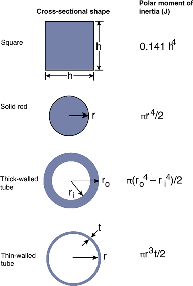 Figure 16-14 Cross-sectional views and the corresponding polar moments of inertia.