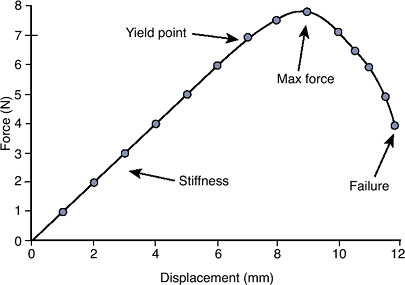 Stress—strain curve (Fig. 16-7): A stress—strain curve is computed from a force-displacement curve.