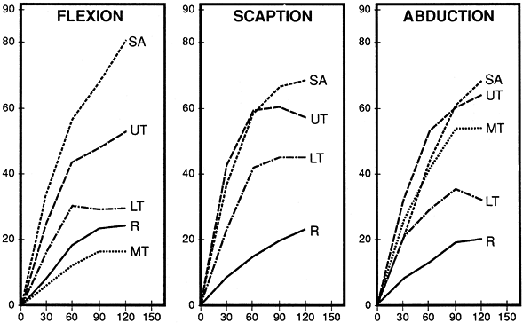 the other in the depression transfer (52). A study of the prone push-up exercise shows the serratus anterior to be a major force when the