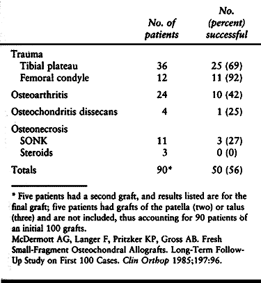 eds. Osteochondral Allografts. Boston: Little, Brown & Co, 1983.