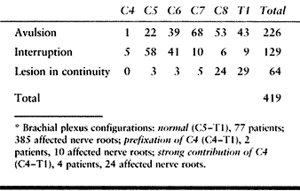 Table 60.6. Involvement of Individual Nerve Roots in 83 Patients with Complete Brachial Plexus Palsies*