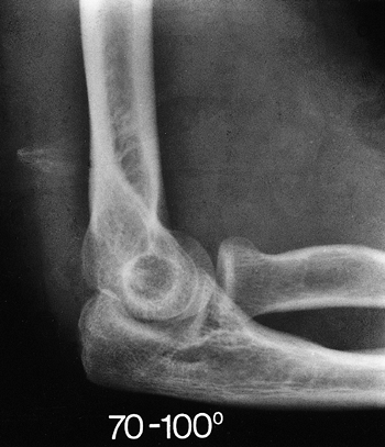 Figure 21-10. Marked contracture developed after 3 weeks immobilization for “simple” dislocation. The joint is intact.