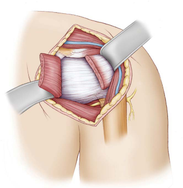 ). In athletes that rely heavily on upper extremity function, consider use of a subscapularis-splitting approach.[3] It has been shown to have a higher rate of return to professional-level activity. Close the rotator interval between the superior and middle glenohumeral ligaments with absorbable suture if a lesion is present. Identify and protect the axillary nerve as it crosses near the inferior border of the capsule.