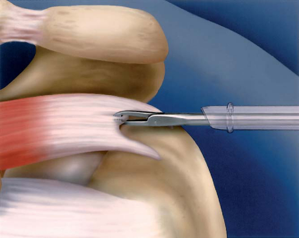 The surgeon’s, anesthesiologist’s, and patient’s preferences determine the type of anesthesia administered. The procedure may be performed under regional anesthesia, general anesthesia, or a combination. The patient may be positioned in either the beach chair or the lateral decubitus position. The beach chair position is more familiar to many surgeons and is often easier to convert to an open procedure. The lateral decubitus position provides traction on the arm, which enhances visualization in the subacromial space.