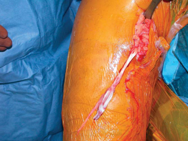 Although there is no clear consensus on the surgical treatment of symptomatic, refractory, isolated biceps tendinopathy, it is generally agreed that débridement is indicated for partial tears affecting 30% to 50% of the tendon substance. [1] [3] [19] Advocates of tenotomy base their approach on the benign natural history and good functional outcomes of traumatic biceps ruptures. However, complications such as cosmetic (“Popeye”) deformity due to distal retraction of the muscle belly, supination weakness, and muscle spasm have led to the development of numerous tenodesis techniques.[5] Recent series have reported a 70% incidence of Popeye deformity and 38% incidence of elbow flexion fatigue with tenotomy alone.[13]