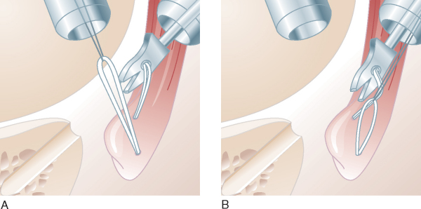 Figure 4-18 (From Thal R. Knotless suture anchor fixation for shoulder instability. In Miller MD, Cole BJ, eds. Textbook of Arthroscopy. Philadelphia, Elsevier, 2004.) |